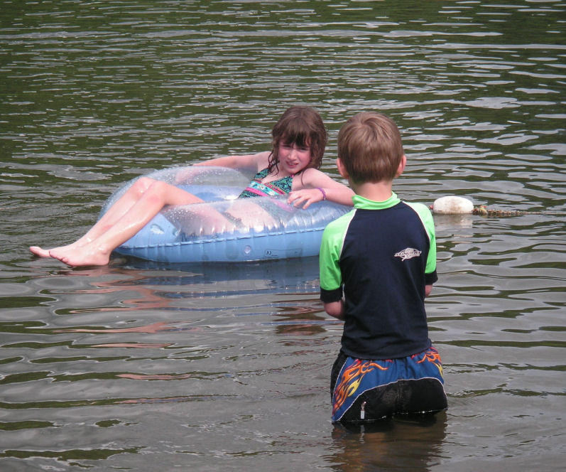 Elena and Tyler enjoying the water of Lake Alice, Alice Lake Provincial Park, BC