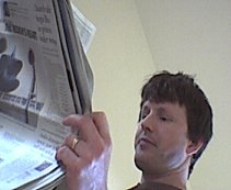 Dad trying to read the newspaper! |