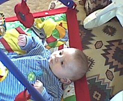 Tyler 2 months - Intrigued by hanging stuffed animals |