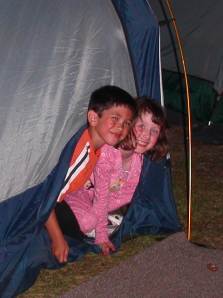 Elena and friend Jayme - popping out of the tent! - Lopez Island Campground