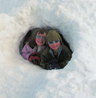 Elena and Tyler having fun in a snow cave! - Christmas Day, 2006