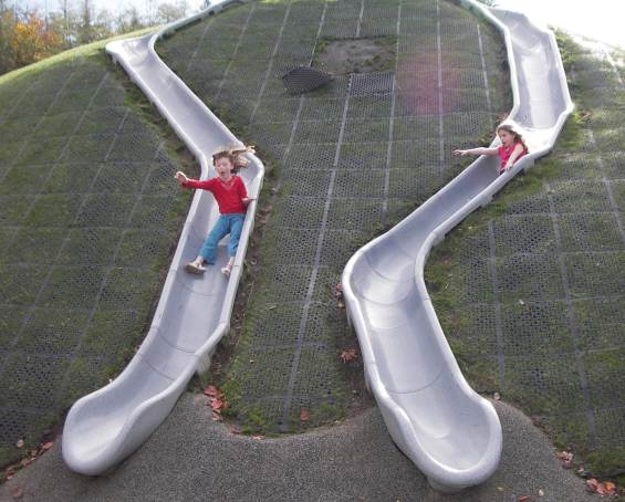 Down the slides - Elena and Katherine go!