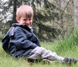 Tyler relaxing in the neighborhood woods